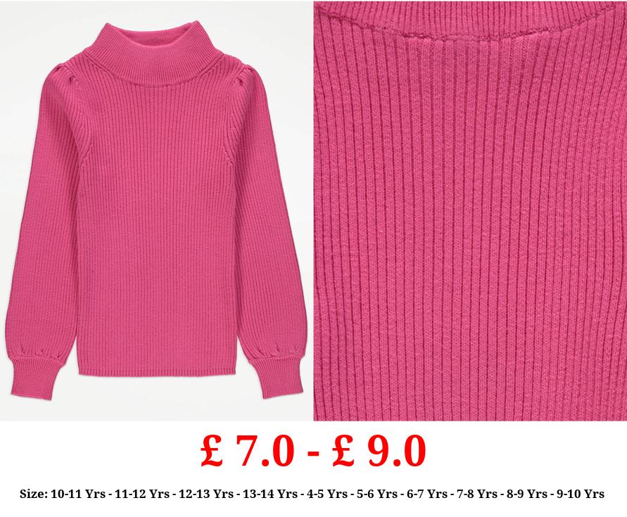 £ 7.0 - £ 9.0 Bright Pink Knitted Funnel Neck Jumper