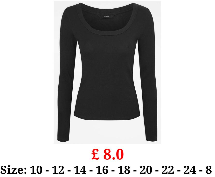 £ 8.0 Black Scoop Neck Ribbed Long Sleeve Top