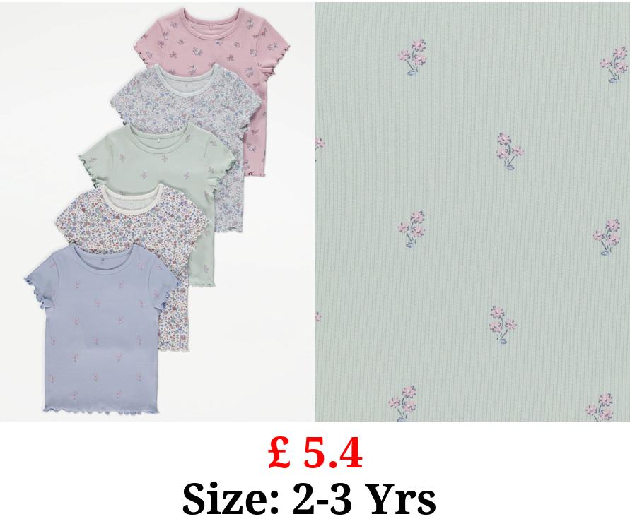 £ 5.4 Ditsy Floral Ribbed T-Shirts 5 Pack