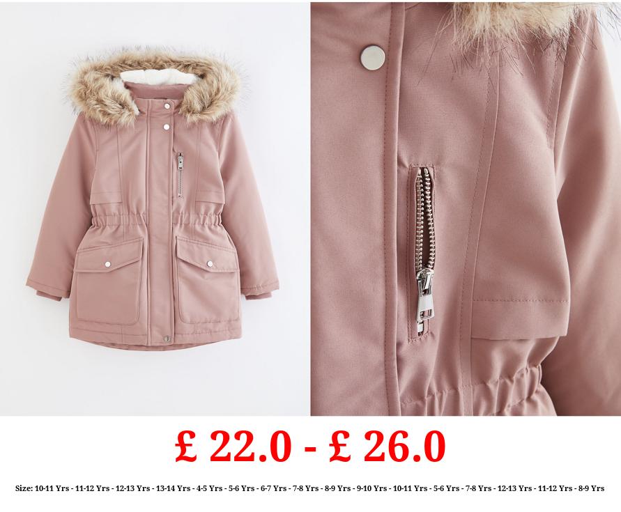 £ 22.0 - £ 26.0 Pink Faux Fur Trim Parka Coat