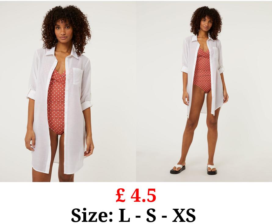 £ 4.5 White Button Up Longline Beach Shirt