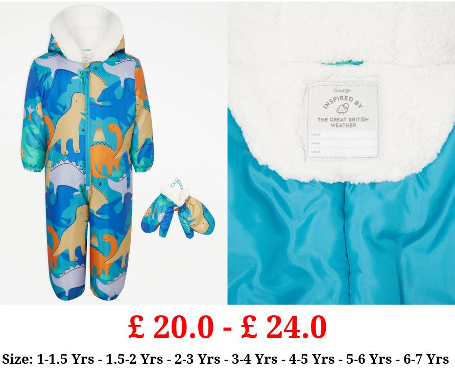 £ 20.0 - £ 24.0 Blue Dinosaur Print Snowsuit and Mittens