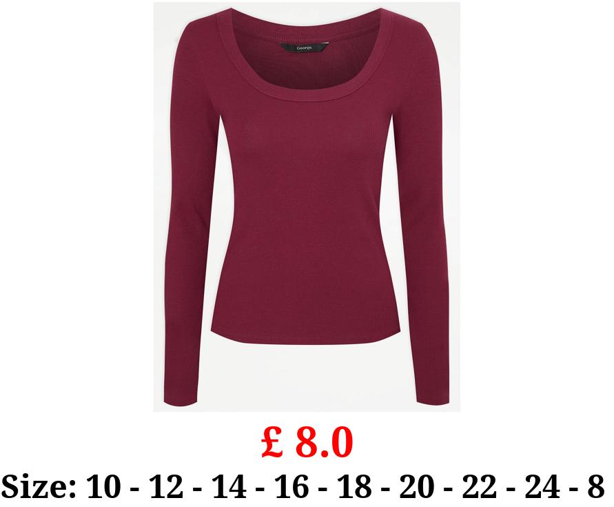£ 8.0 Burgundy Scoop Neck Ribbed Long Sleeve Top