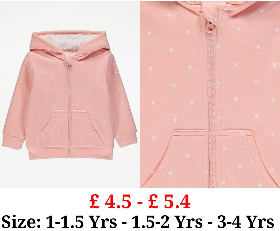 £ 4.5 - £ 5.4 Pink Heart Print Zip Up Hoodie