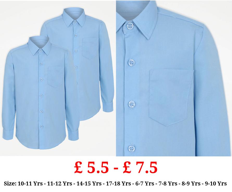 £ 5.5 - £ 7.5 Boys Light Blue Long Sleeve School Shirts 2 Pack
