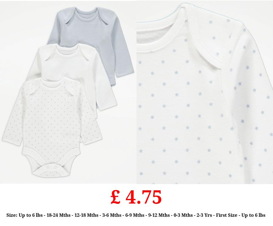 £ 4.75 White Mini Star Long Sleeve Bodysuits 3 Pack