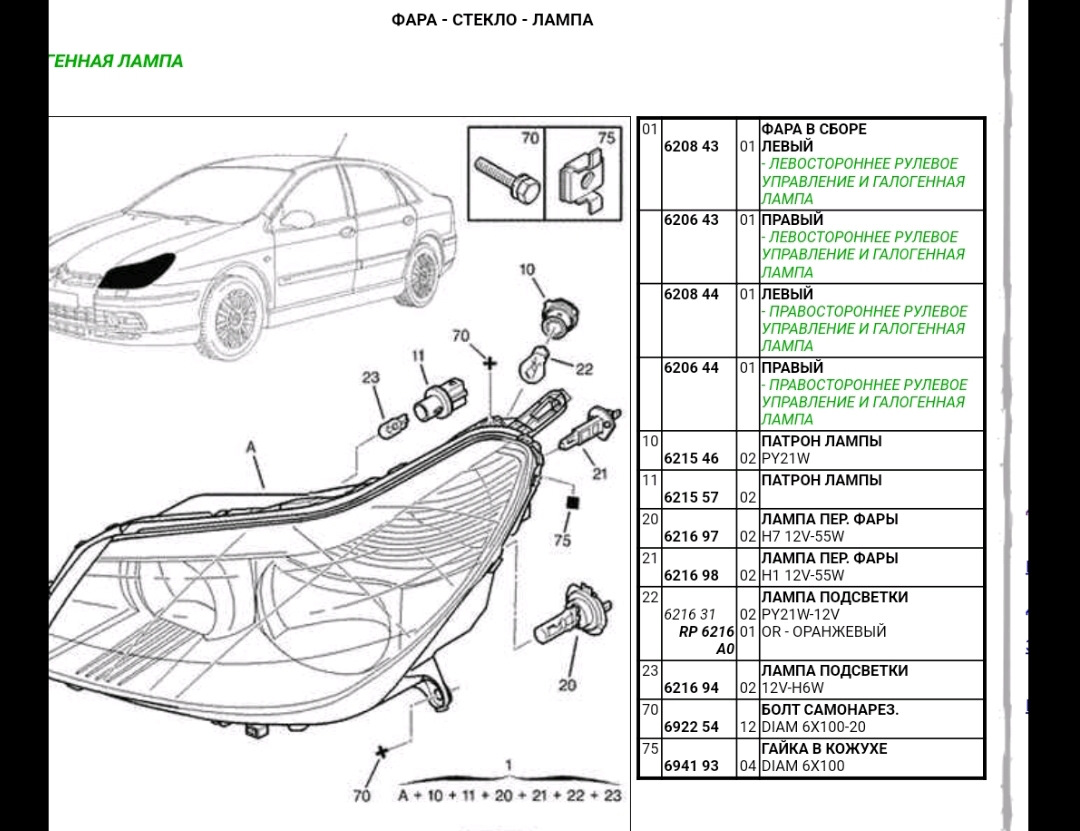 ламп ситроен с5