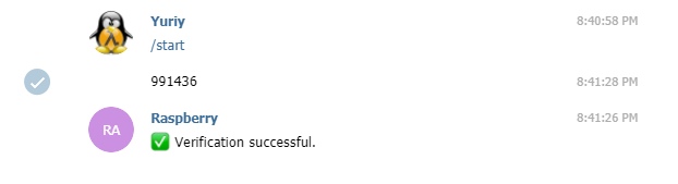 - Затем, вводим полученный код в диалоге со своим ботом: