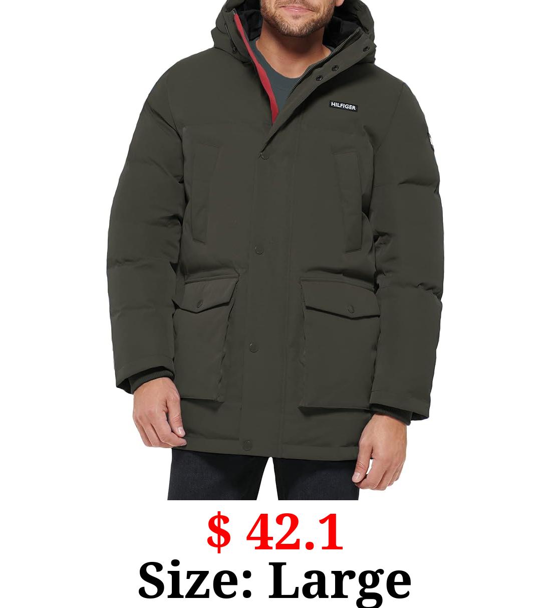 $ 42.1 Size: Large Tommy Hilfiger Men's Arctic Cloth Heavyweight Performance Parka Down Alternative Fur Lined Hood Outerwear Coat