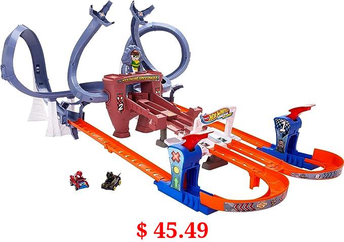 $ 45.49 Hot Wheels RacerVerse Spider-Man’s Web-Slinging Speedway Track Set with Hot Wheels Racers Spider-Man & Black Panther, Multi-Lap Race to Escape Doc Ock