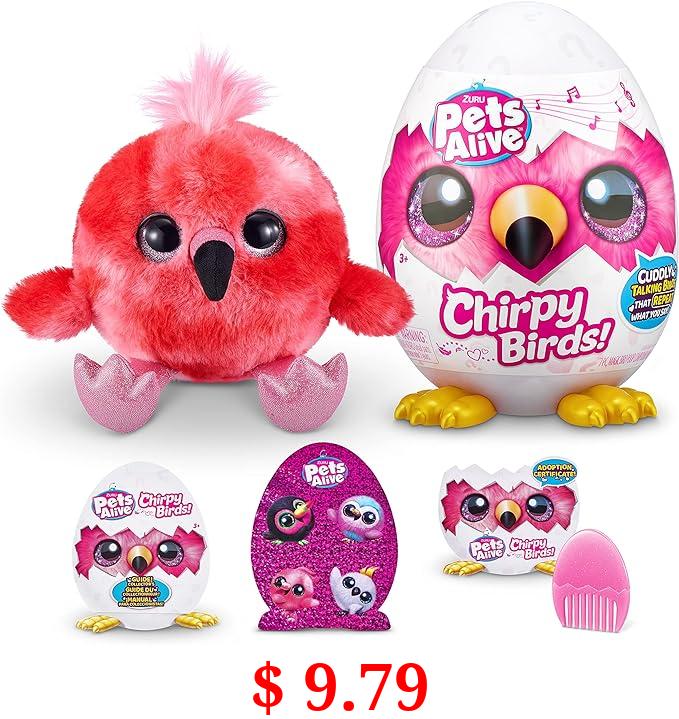 $ 9.79 Pets Alive Chirpy Birds (Flamingo) by ZURU, Electronic Pet That Speaks, Giant Surprise Egg, Stickers, Comb, Fluffy Clay, Bird Animal Plush for Girls