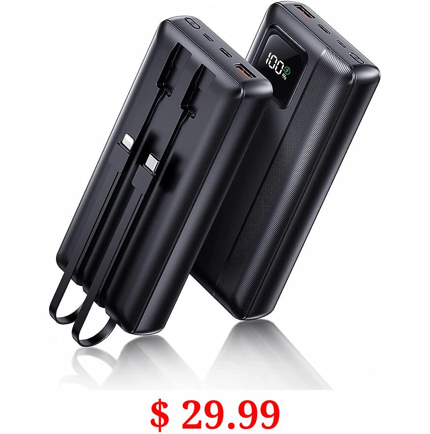 $ 29.99 Power-Bank-Portable-Charger - 40000mAh Power Bank Support PD 30W and QC4.0 Fast Charger with Built-in 2 Output Cable and LED Display for iPhone and Android Phones and Most Electronic Devices
