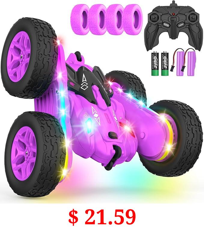 $ 21.59 Terucle Remote Control Car, Rc Cars Stunt Car Toys New Upgraded Strip Lights and Headlights Car Toys Double-Sided 360° Rotating 4WD Rc Drift Truck for Boys Girls Birthday Gift (Purple)