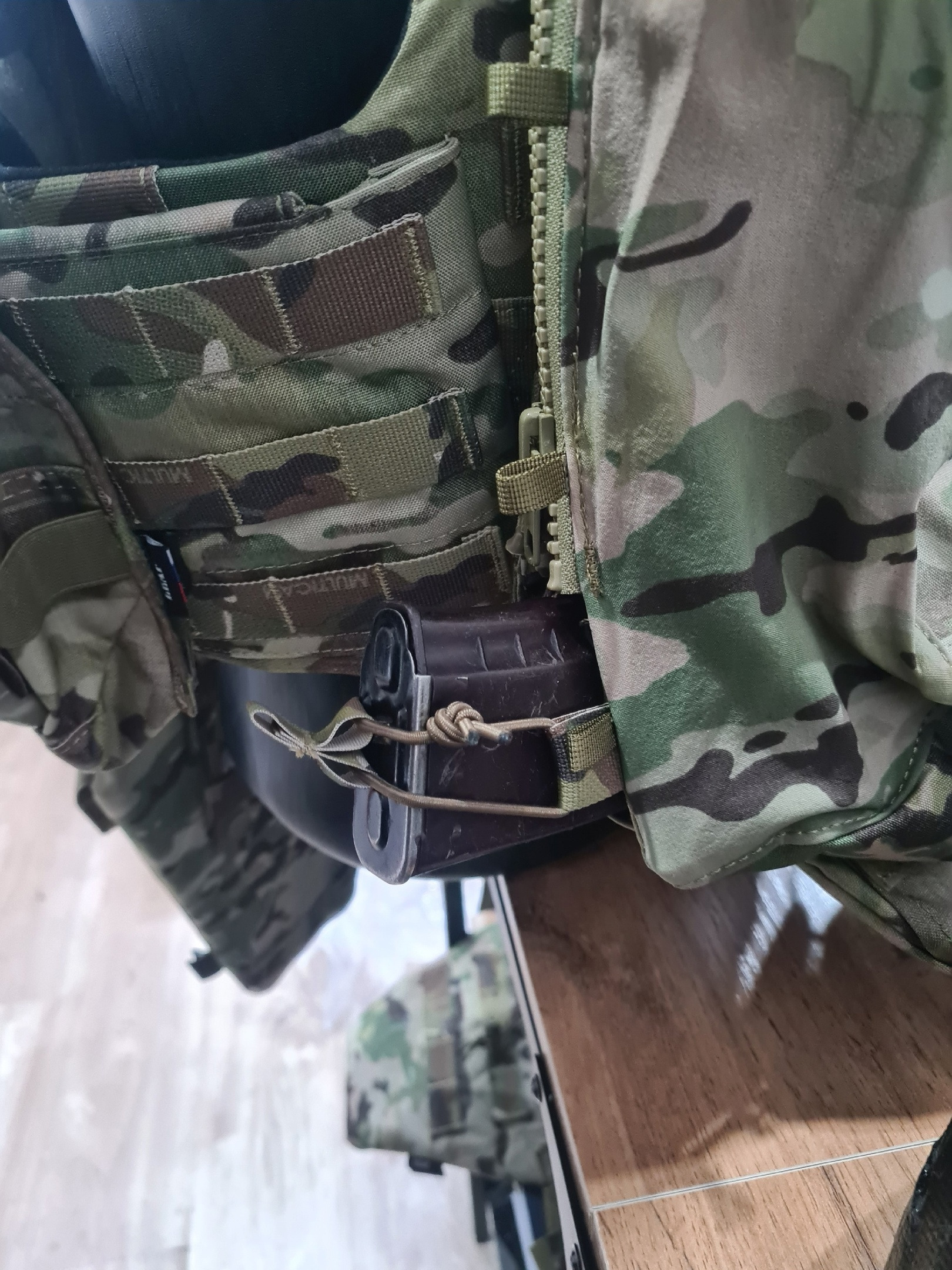 Крепится при помощи ZIP-молний или на MOLLE.