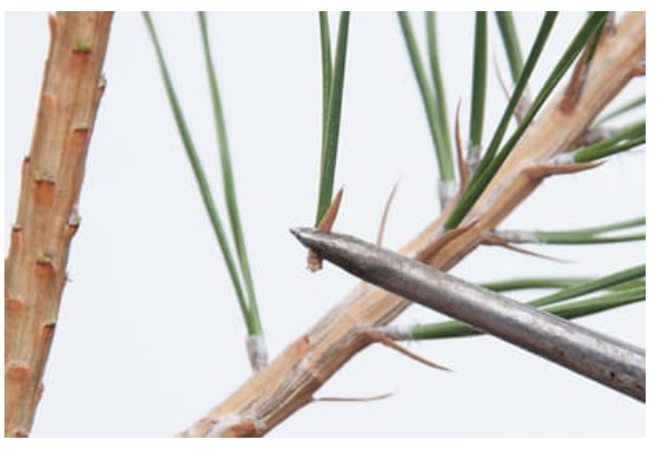 توسط سوزن کشی با پنس یا انگشت ها دست جوانه های جدید به روی شاخه ظاهر می شوند چنانچه به روی ساقه برگی باقی نگذارید درخت دیگر در ان قسمت جوانه وشاخه نمی زند واگر شاخه هیچ گونه برگ در راس نداشته باشد ان شاخه خشک می شود