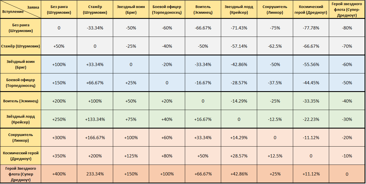 Таблица расчета ставки для разных PvP-рангов.