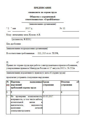 Предписание специалиста по охране труда 2026 образец 88 фотографий