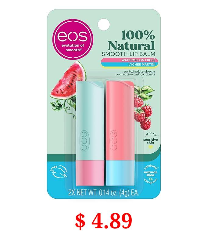 $ 4.89 eos 100% Natural Lip Balm Sticks- Watermelon Frosé and Lychee Martini | Dermatologist Recommended for Sensitive Skin | All Day Moisture | 0.14 oz | 2-Pack