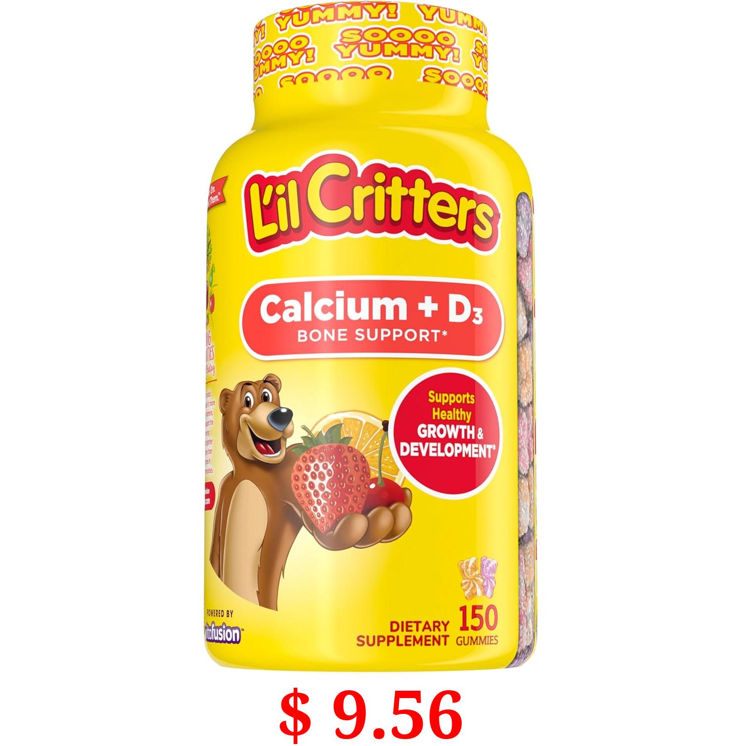 $ 9.56 L’il Critters Calcium + D3 Daily Gummy Supplement for Kids, for Bone Support, Orange, Strawberry and Cherry Flavors, 150 Gummies