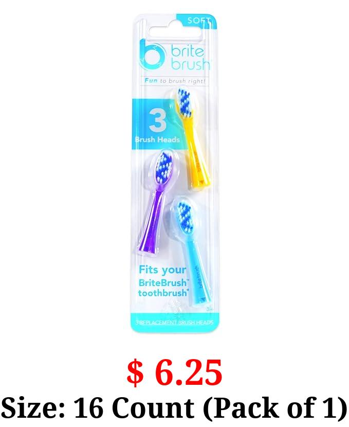 $ 6.25 Size: 16 Count (Pack of 1) BriteBrush Brush Head Replacement 3-Pack - for BriteBrush Interactive Smart Kids Brushes - Fun to Play Twice a Day!, 3 Count (Pack of 1)