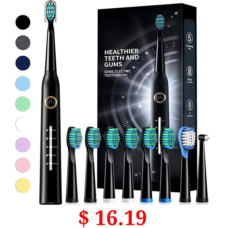 $ 16.19 Sonic Electric Toothbrushes for Adults, 8 Brush Heads Electric Toothbrush with 40000 VPM Deep Clean 5 Modes, Rechargeable Toothbrushes Fast Charge 4 Hours Last 30 Days