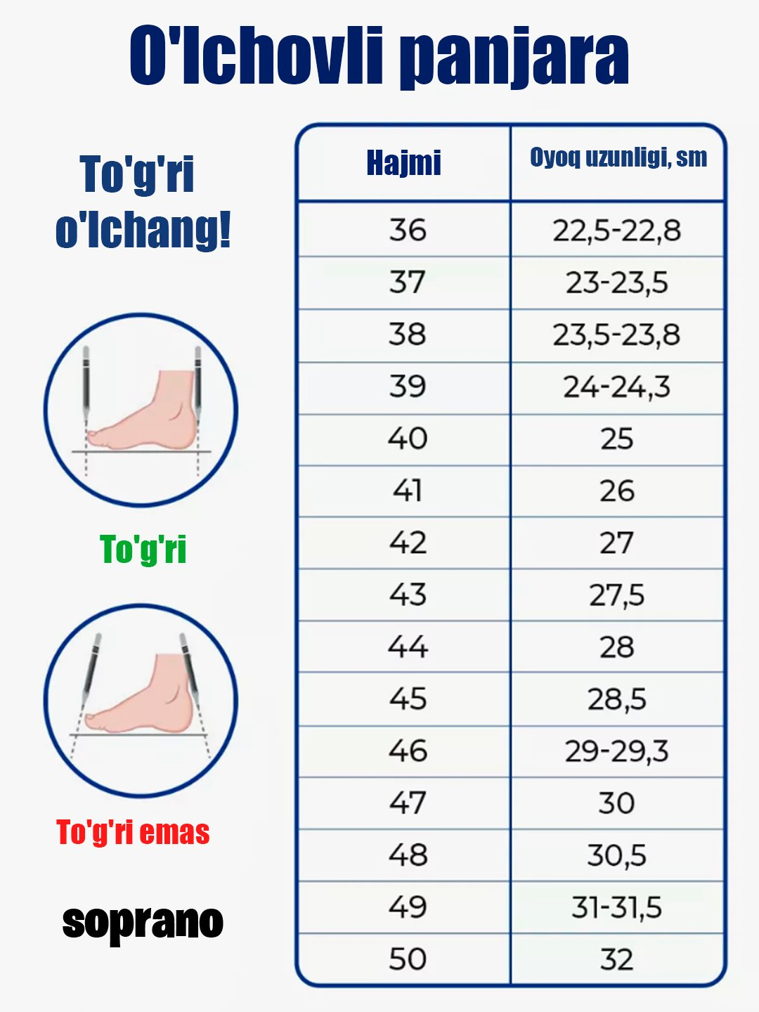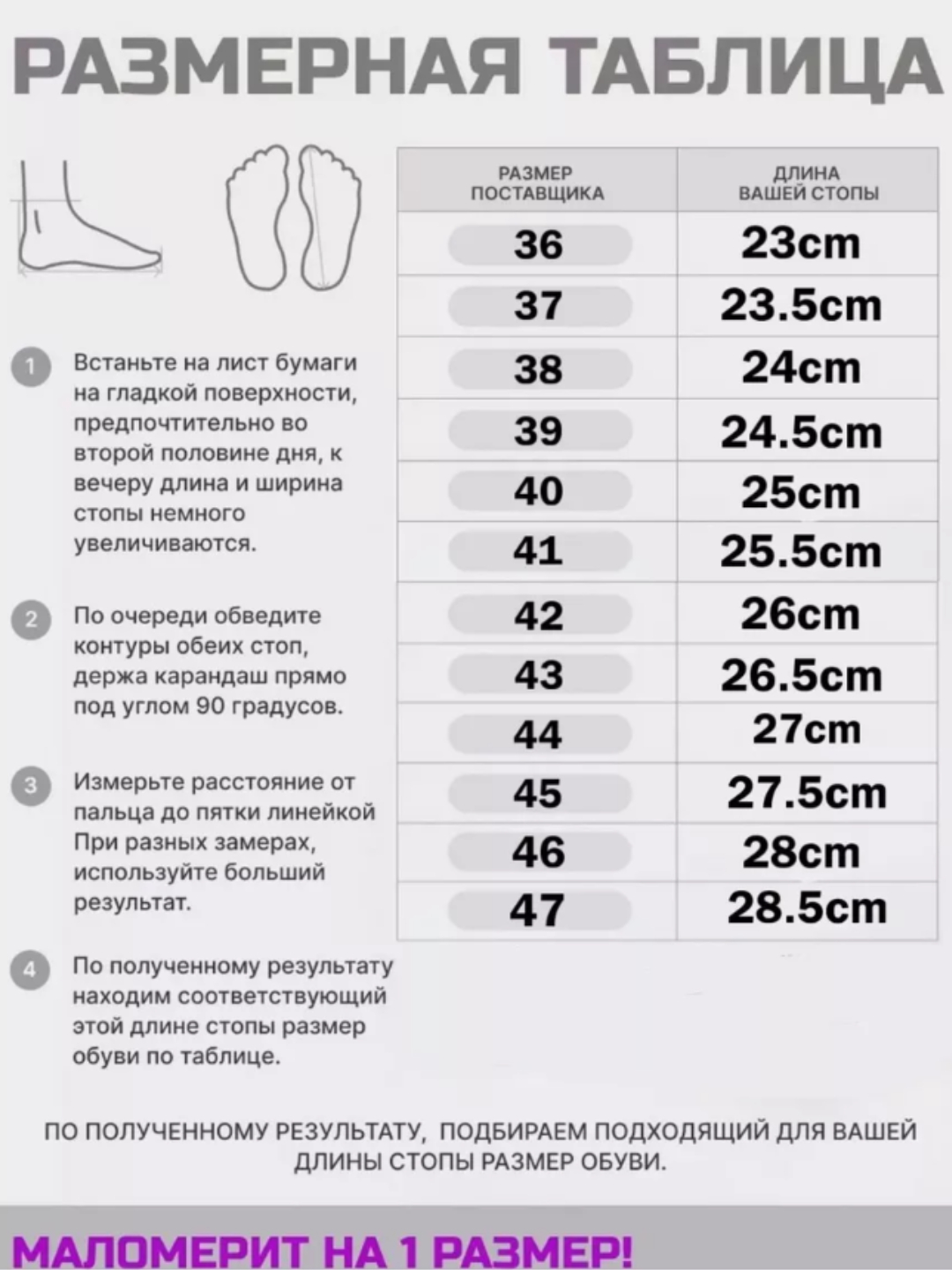 ломерят на размер обувь