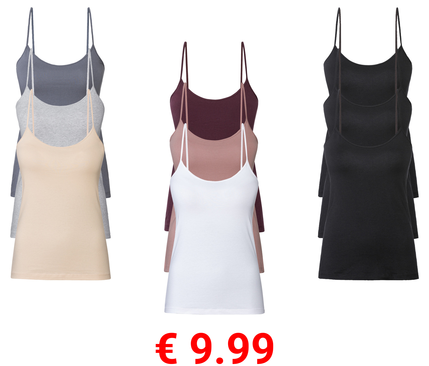 € 9.99 esmara® Damen Spaghettiträgerhemden, 3 Stück, mit hohem Baumwollanteil