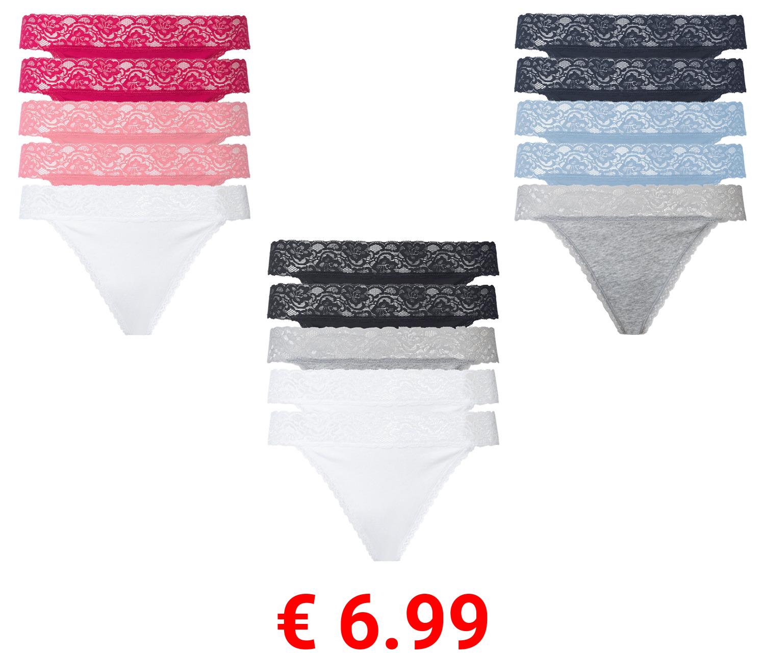 € 6.99 esmara® Damen Strings, 5 Stück, mit eleganter Spitze