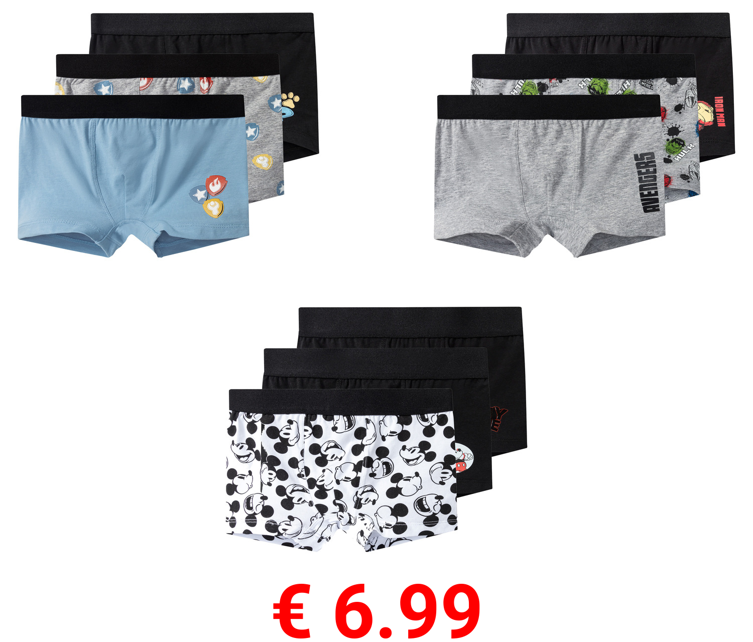 € 6.99 Kleinkinder Kinder Jungen Boxer, 3 Stück, mit Textildruck