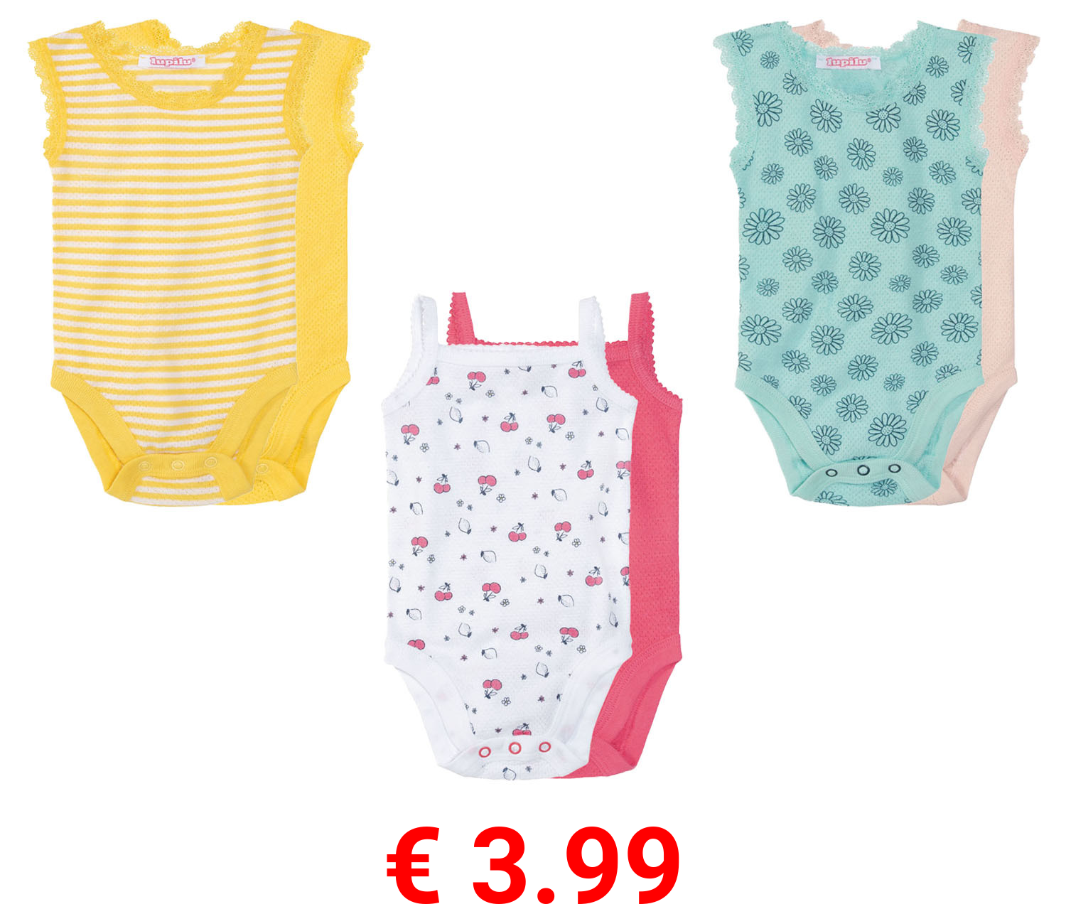 € 3.99 lupilu® Baby Mädchen Body, 2 Stück, in leichter Mesh-Qualität