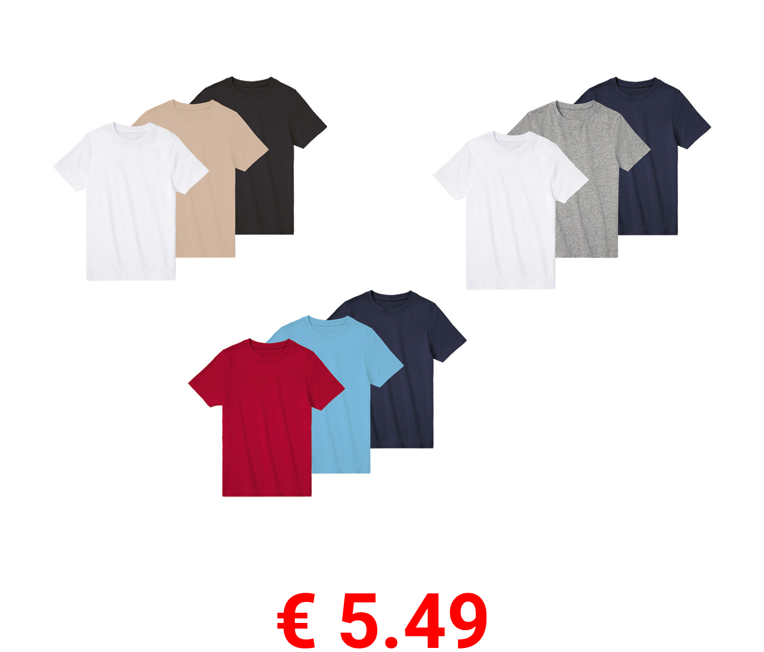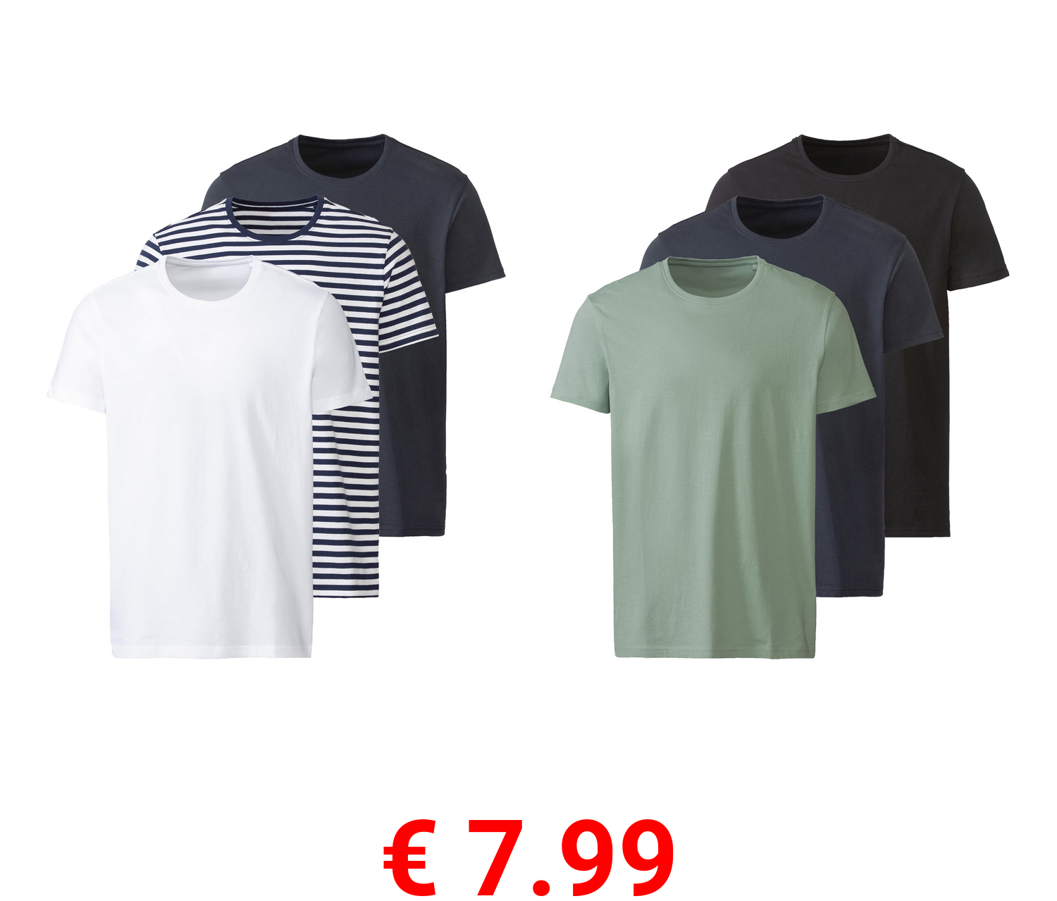 € 7.99 LIVERGY® Herren T-Shirts, 3 Stück, aus reiner Baumwolle