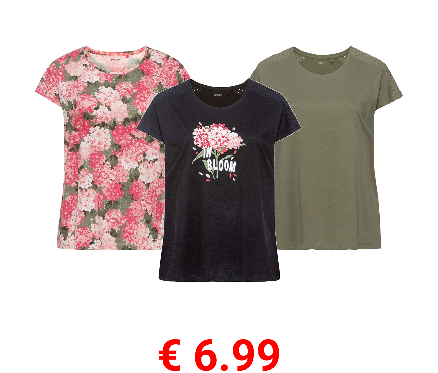 € 6.99 esmara® Damen T-Shirt, leger geschnitten, mit überschnittener Schulter