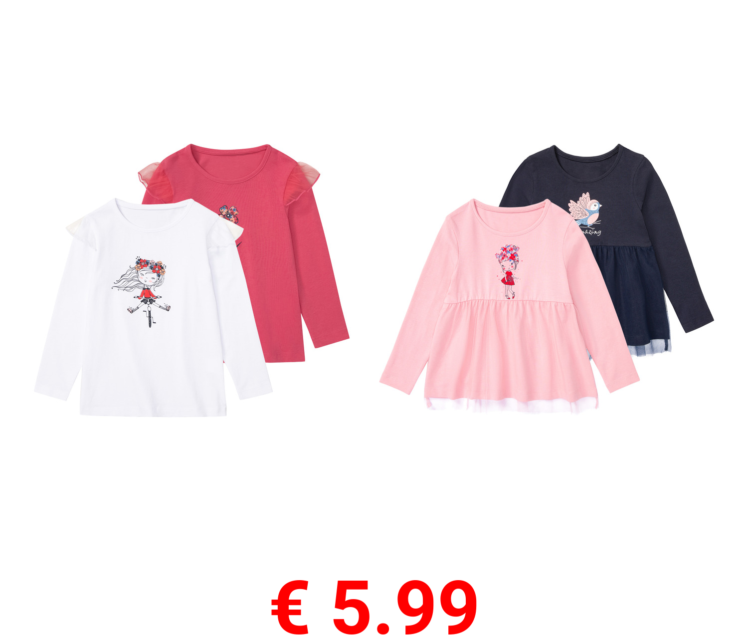 € 5.99 lupilu® Kleinkinder Mädchen Langarmshirts, 2 Stück, langarm