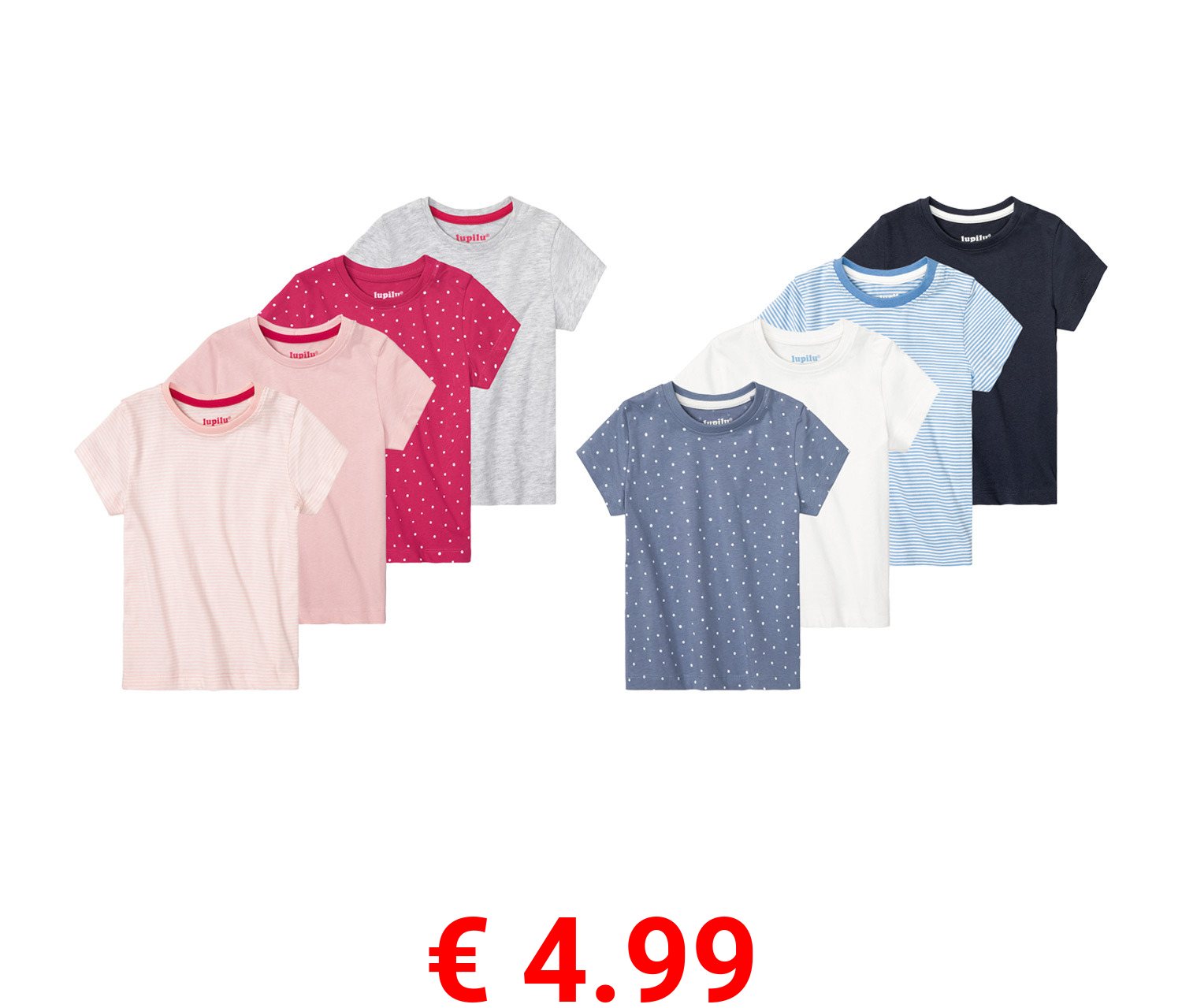 € 4.99 lupilu® Kleinkinder Mädchen T-Shirts, 4 Stück, aus weicher Single-Jersey-Qualität