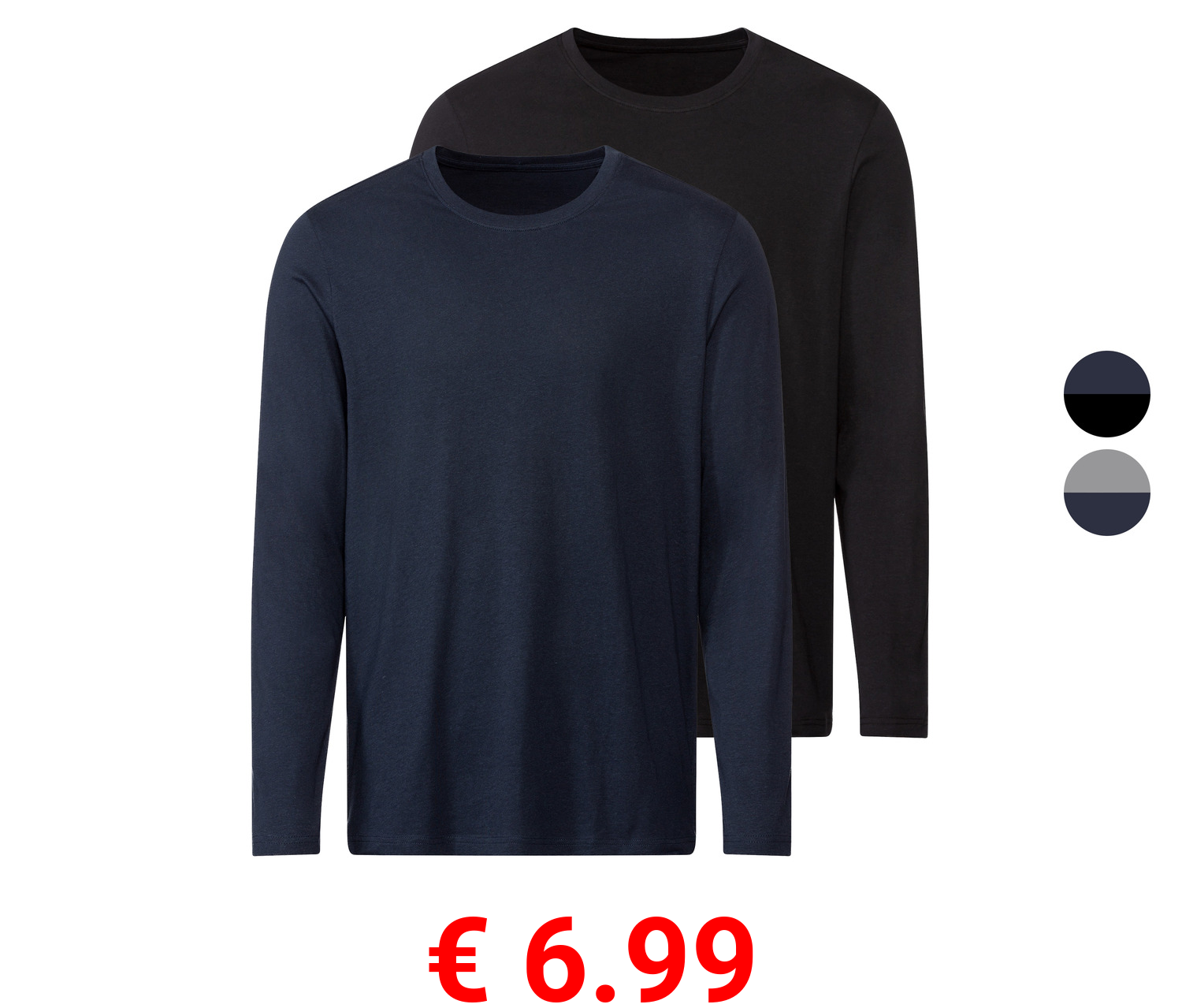 € 6.99 LIVERGY® Herren Langarmshirt, 2 Stück, mit Rundhalsausschnitt