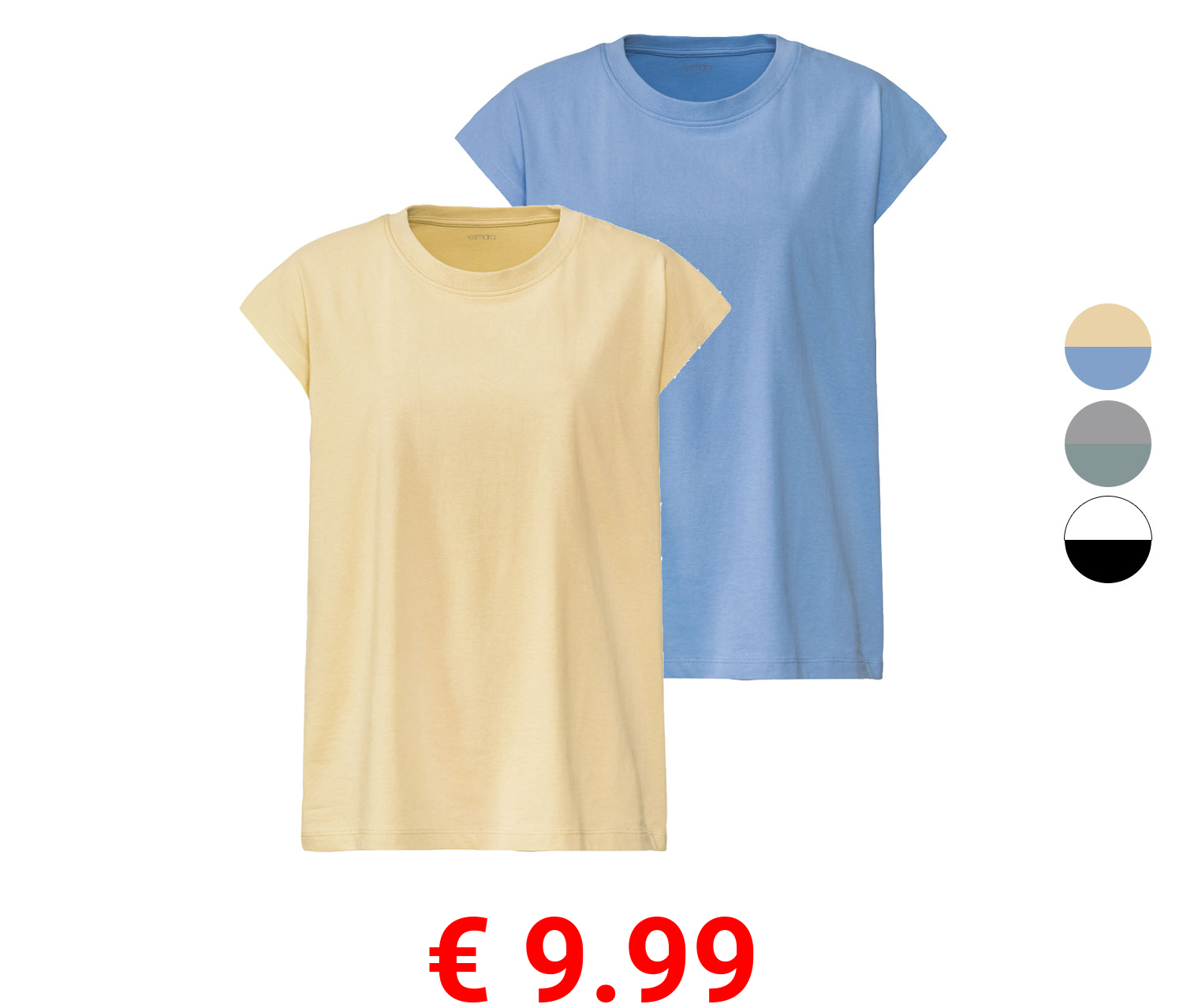€ 9.99 esmara® Damen T-Shirts, 2 Stück, mit überschnittenen Schultern
