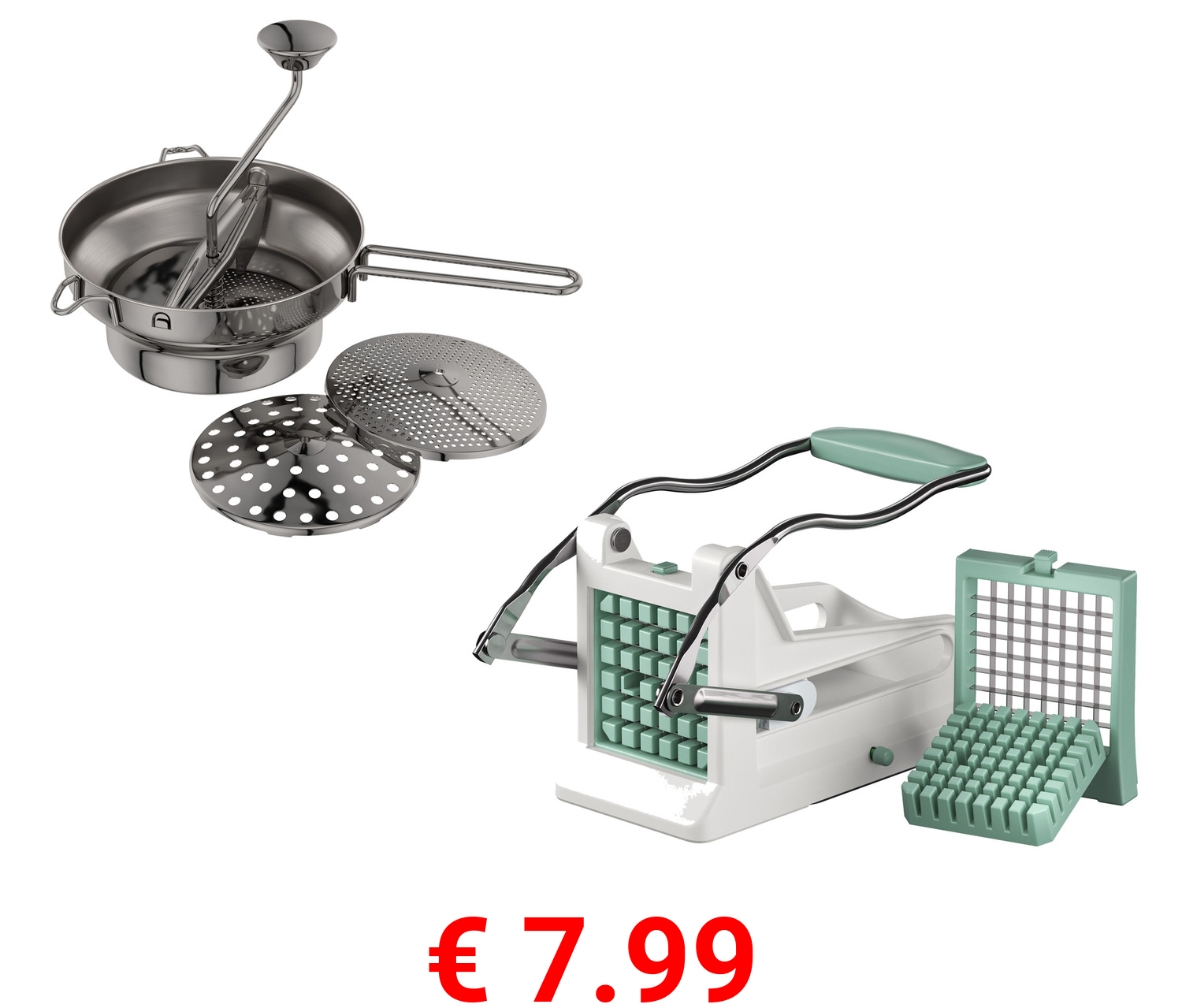 € 7.99 ERNESTO® Passiermühle / Pommesschneider, mit verschiedenen Einsätzen