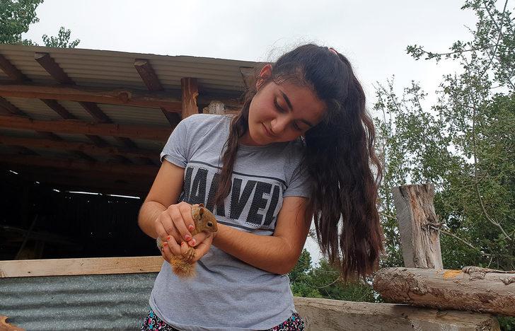 OSMANİYE'nin Kadirli ilçesinde Gamze Çanakçı (16), babasının bulduğu yavru sincabı sahiplenip, büyüttü . Sincaba gözü gibi bakan Gamze Çanakçı, evlerinin yanında ona, özel bir yuva yaptı .