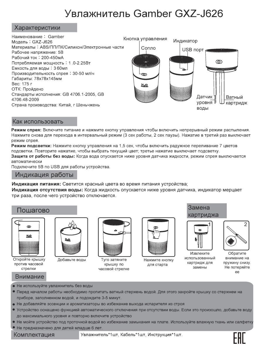 ltrasonic humidifier инструкция