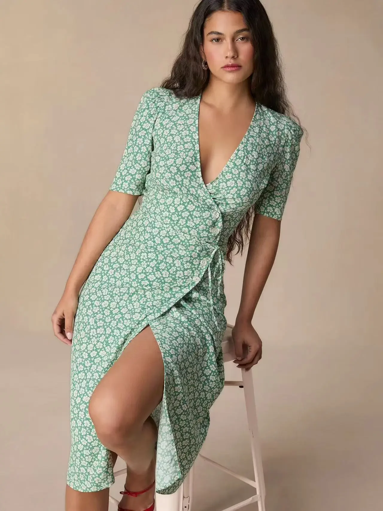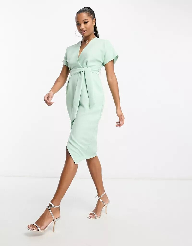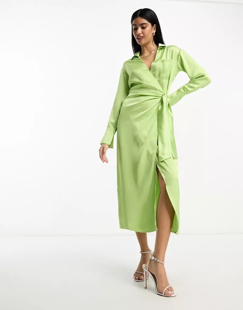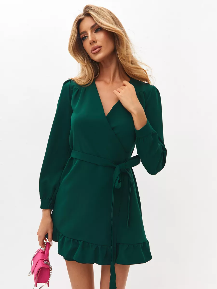 Платье запахом зеленое 72 фото