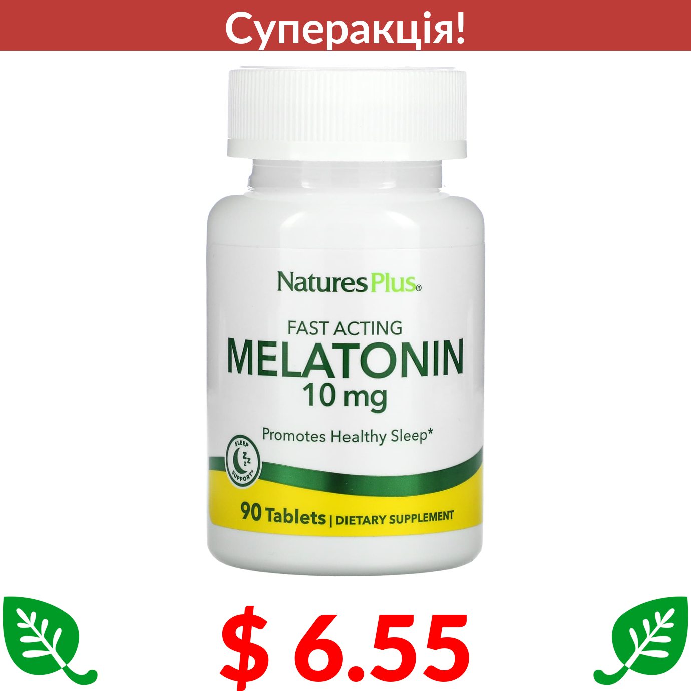 $ 6.55 Nature's Plus, Мелатонін, 10 мг, 90 таблеток