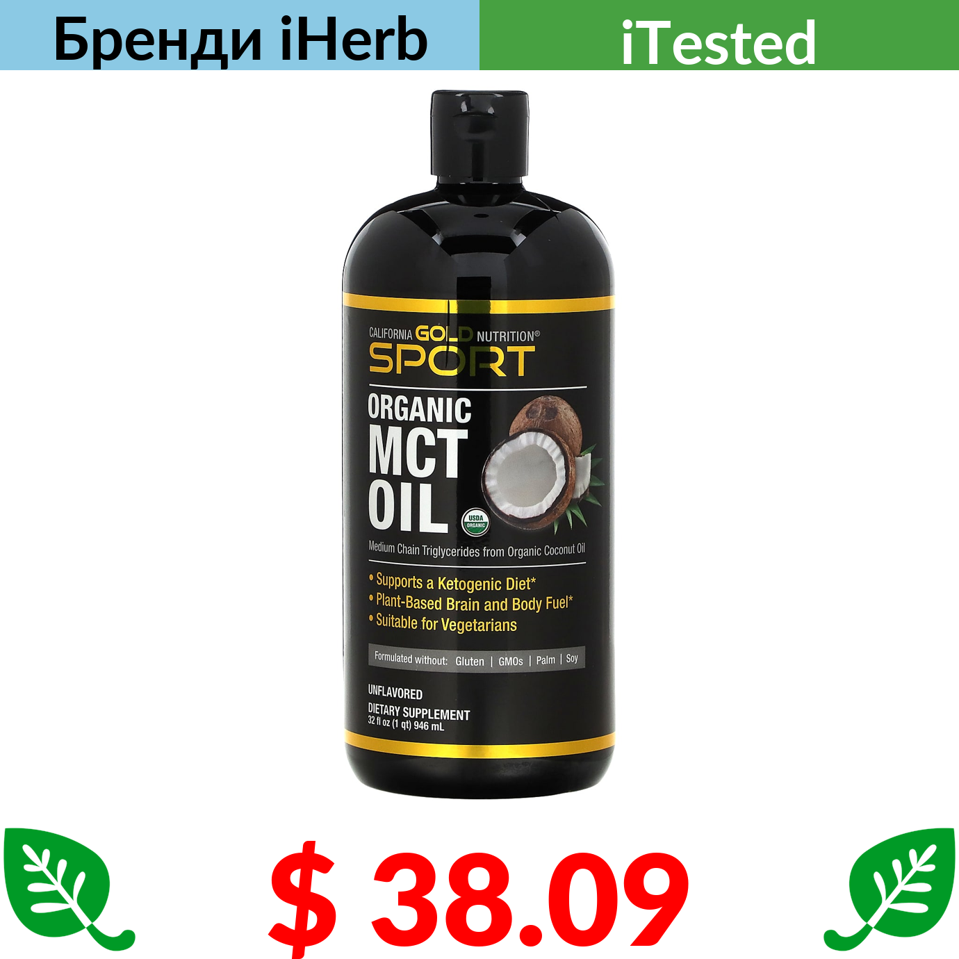 $ 38.09 California Gold Nutrition, органічна олія MCT, 946 мл (32 рідк. унції)