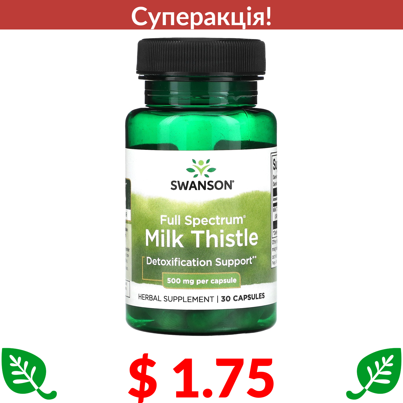 $ 1.75 Swanson, розторопша повного спектру, 500 мг, 30 капсул