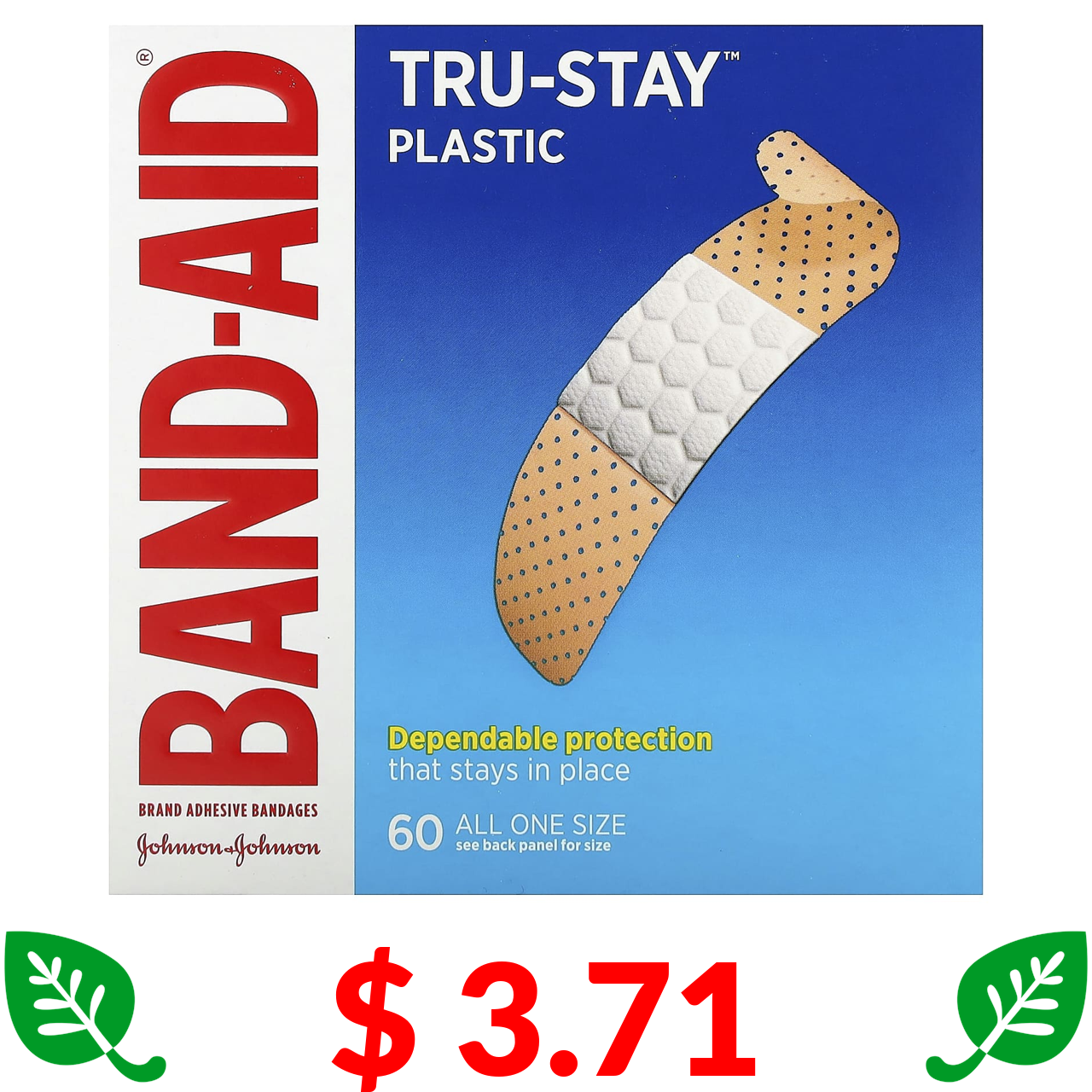 $ 3.71 Band Aid, Tru-Stay, лейкопластир, пластиковий, 60 пластирів
