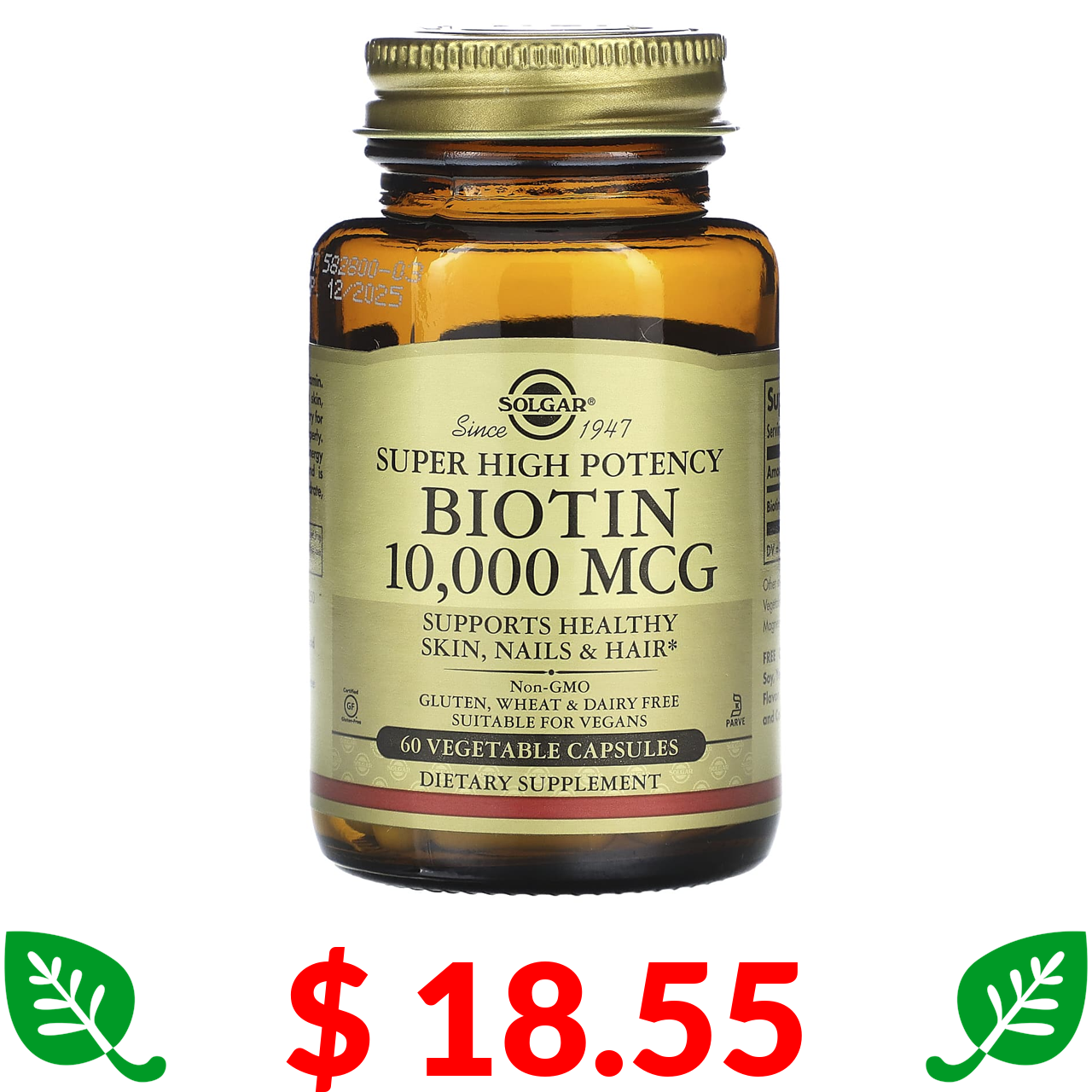 $ 18.55 Solgar, біотин, надзвичайно висока ефективність, 10 000 мкг, 60 рослинних капсул
