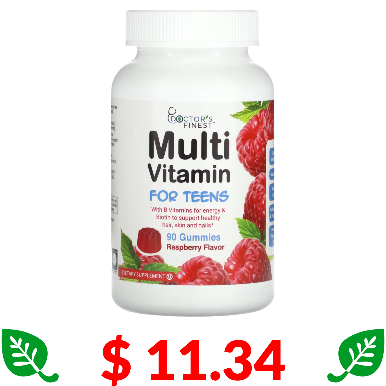 $ 11.34 Doctor's Finest, мультивітаміни для підлітків, малина, 90 жувальних мармеладок