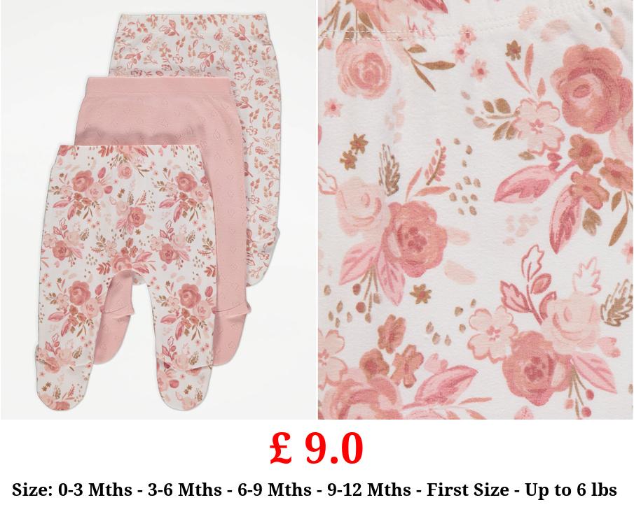 £ 9.0 Pink Floral Footed Leggings 3 Pack