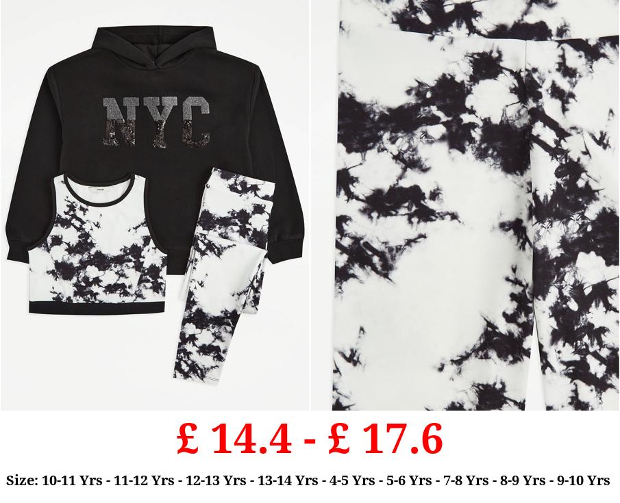 £ 14.4 - £ 17.6 Black Tie Dye Hoodie Crop Top and Leggings Outfit