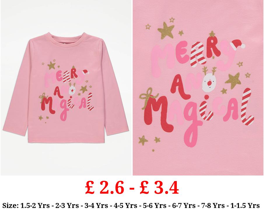 £ 2.6 - £ 3.4 Pink Merry and Magical Long Sleeve Christmas Top