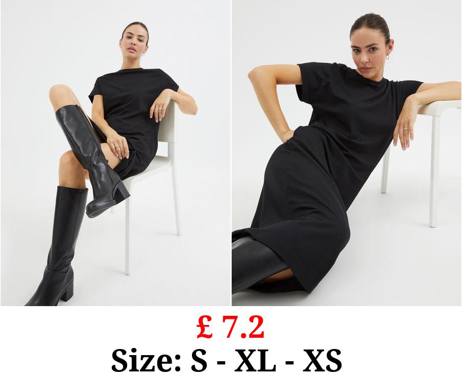 £ 7.2 Black Midi T-Shirt Dress